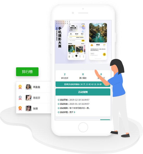專業第三方微信投票評選活動制作平臺,3分鐘即可制作一場活動,已穩定運行853天,創建活動超200萬場,無任何隱性消費。
